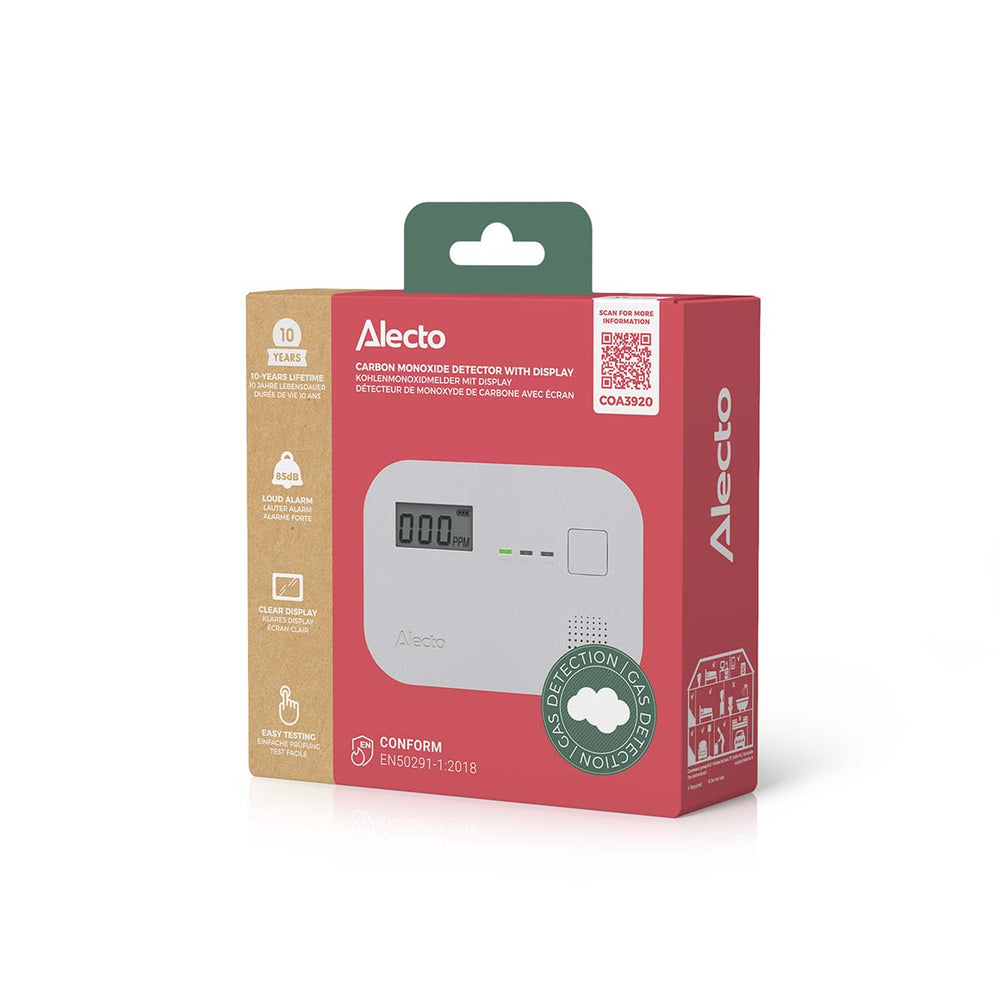 Alecto COA3920 - Détecteur de monoxyde de carbone avec capteur 10 ans et affichage