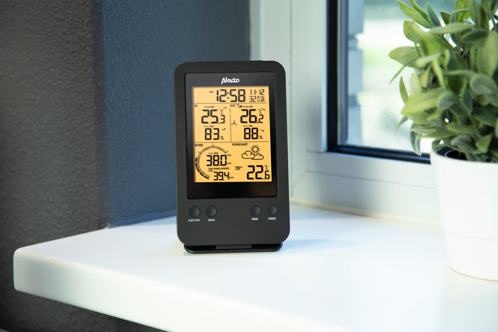 Vous pouvez bien sûr faire beaucoup plus avec cette station météo de haute qualité que de simplement mesurer la température. Dans de nombreuses situations, il est utile de savoir quel temps il fait ou fera. Si vous avez une randonnée à vélo le dimanche, la vitesse du vent est une information précieuse. Soyez automatiquement averti de la présence de verglas ou de routes glissantes avant de monter dans votre voiture. Avec la station météo WS-3400, vous avez tout ce dont vous avez besoin pour devenir le meilleur prévisionniste météo !
