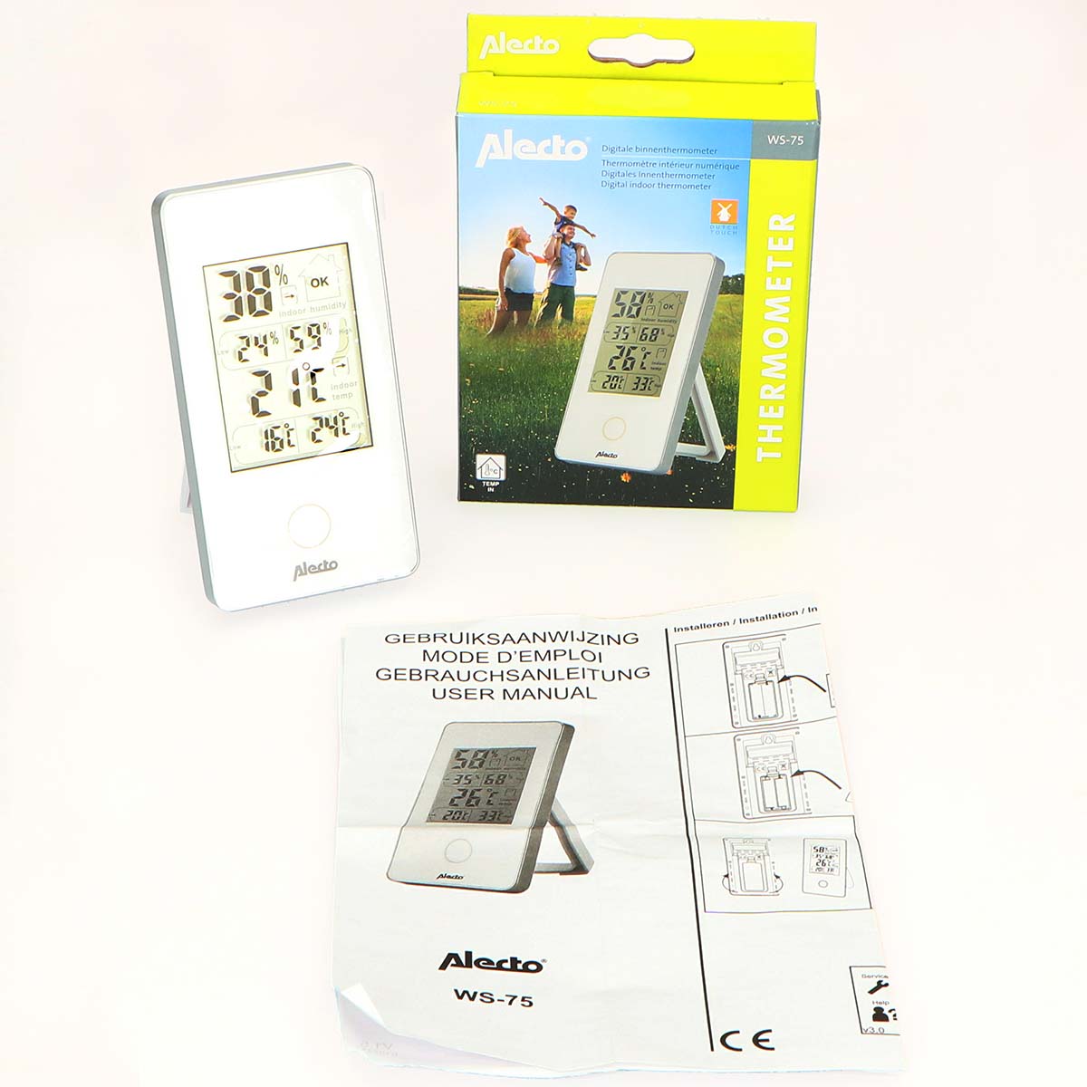 Le thermomètre d'intérieur WS-75 répond à toutes les exigences que vous pouvez attendre d'un produit Alecto. Depuis plus de quarante-cinq ans, Alecto fournit des produits de consommation de qualité et abordables, développés et testés en profondeur aux Pays-Bas. Et comme vous êtes habitués à tous les produits Alecto, le WS-75 est un produit solide avec un bon rapport qualité-prix.