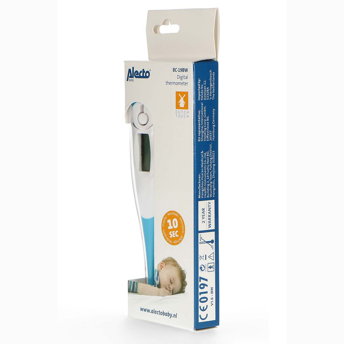 Un thermomètre solide, fiable et facile d’utilisation est un appareil indispensable dans tous les foyers. Ce thermomètre, c’est le thermomètre BC-19BW de la marque Alecto Baby. Avec un écran LCD qui affiche les chiffres en grand format de manière à ce qu’ils soient faciles à lire. Grâce au temps de réponse de 10 secondes, vous connaissez rapidement votre température et vous savez si vous avez de la fièvre.