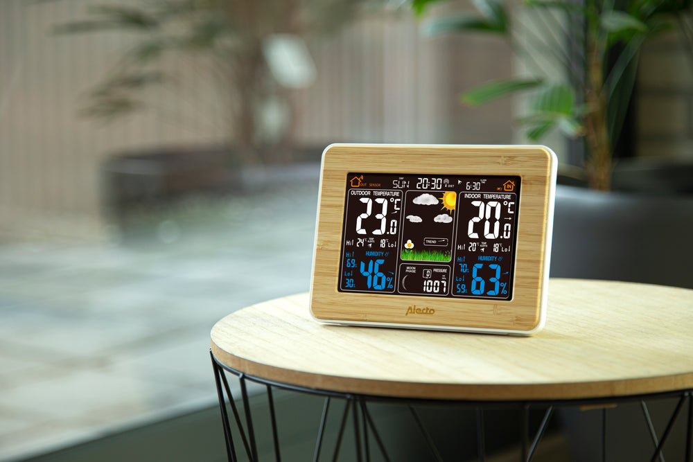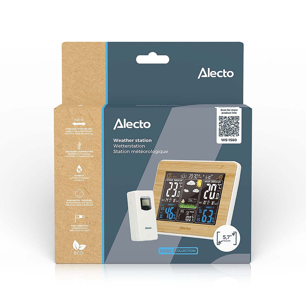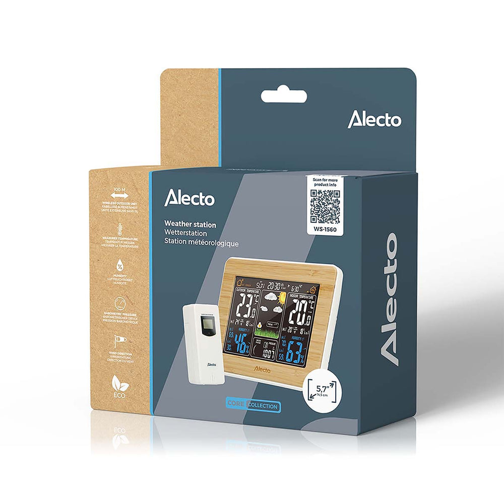 La station météorologique en bambou est adaptée à la pose. L'Alecto WS-1560 est équipé d'un capteur extérieur sans fil qui est connecté à l'écran intérieur. La portée est de 100 mètres. Le réveil à répétition permet d'être réveillé pour vérifier les données à une heure fixe de la journée.