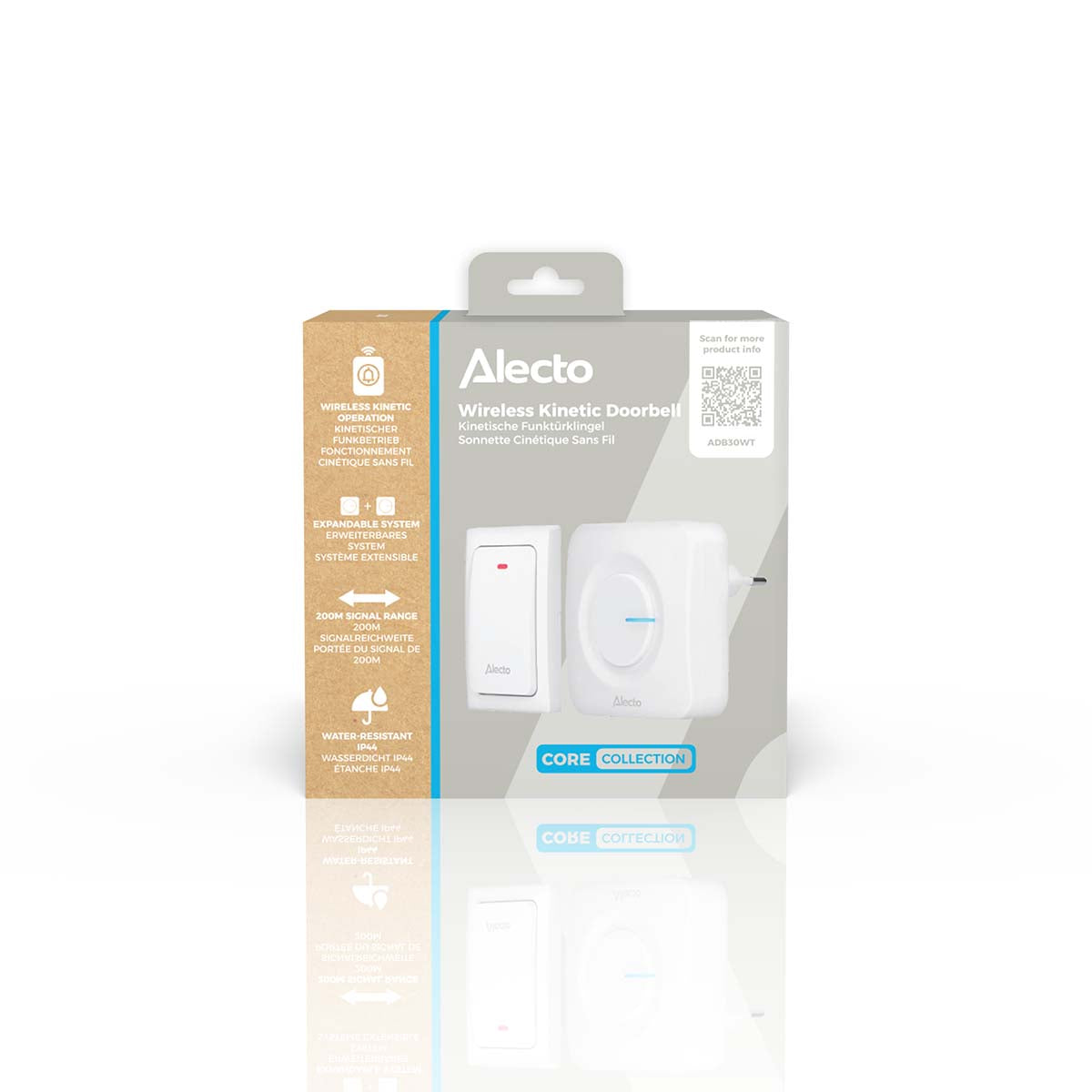 L'Alecto ADB30 est une sonnette cinétique sans fil qui fonctionne à l'énergie cinétique sans utiliser de câbles électriques ou de piles. Il suffit d'appuyer sur un bouton pour que l'énergie soit générée et que la sonnette fonctionne de manière totalement écologique.