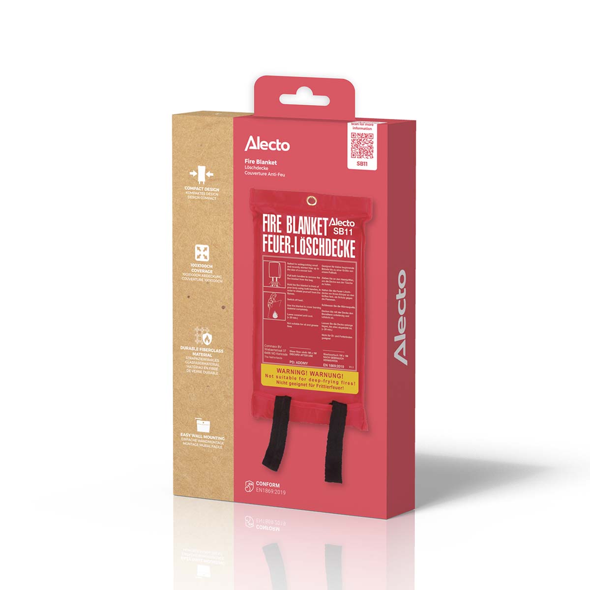 Le feu fait partie de notre quotidien : la flamme de votre chauffage central, de la gazinière, les allumettes ou encore les bougies. Pourtant même une petite flamme qui semble inoffensive peut se propager rapidement et causer un incendie. En prévention, il est nécessaire d’avoir une couverture anti-feu qui soit facile d’accès et à portée de main. La SB-11 peut être votre bouée de sauvetage pour éviter une catastrophe. Elle est utilisable pour presque tous les types de feux. Pour un feu d’huile ou de graisse, dans votre friteuse par exemple, il est nécessaire d’utiliser un extincteur incendie spécifique pour les matières grasses. Combattre un incendie causé par de l’huile ou des graisses avec l’eau ne ferait qu’aggraver la situation. S’il s’agit d’un feu plus grand qu’un ballon de football, mettez-vous en sécurité et faites appel aux pompiers.