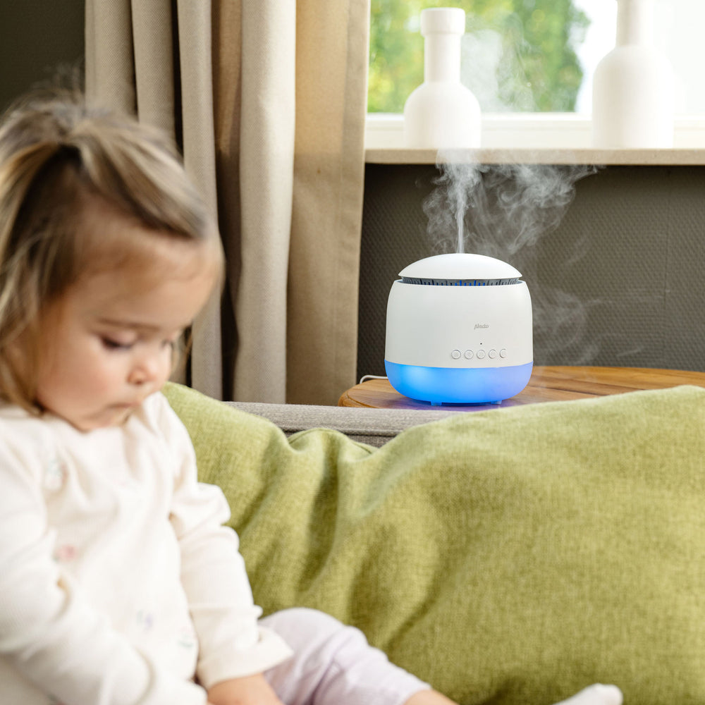 Les bébés et les jeunes enfants dorment beaucoup, mais pas seulement pour se reposer. Ils traitent une multitude d’impressions nouvelles pendant leur sommeil. Ils sont également en pleine croissance. Le sommeil est donc important et votre enfant doit pouvoir s’endormir paisiblement. Cet humidificateur d’air peut l’y aider. Plusieurs couleurs sont disponibles pour l’éclairage de nuit. Les couleurs douces permettent aux enfants de s’endormir rapidement.