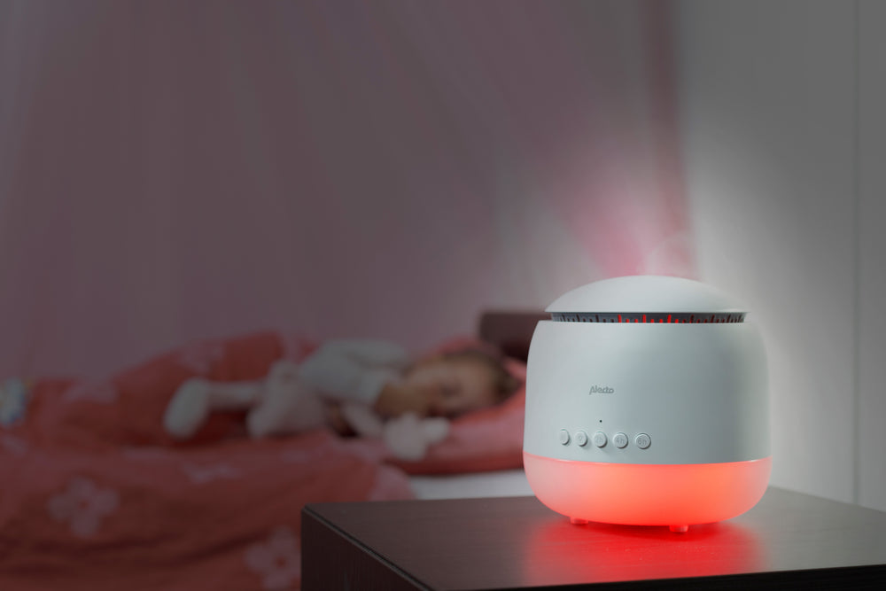 Humidificateur d’air/veilleuse/diffuseur de parfum chambre de bébé trois-en-un Alecto BC23