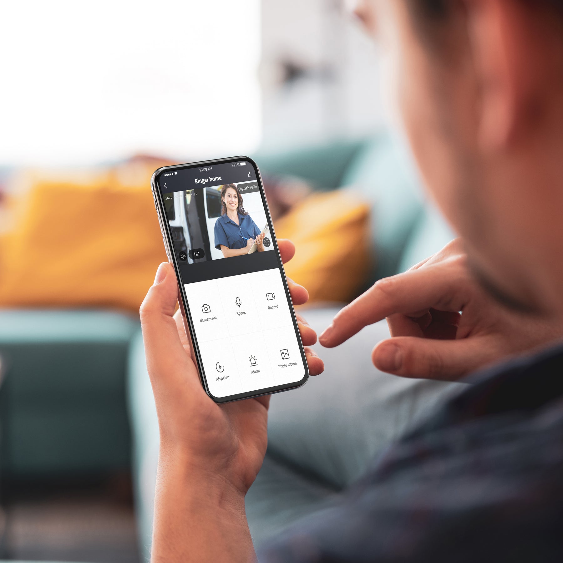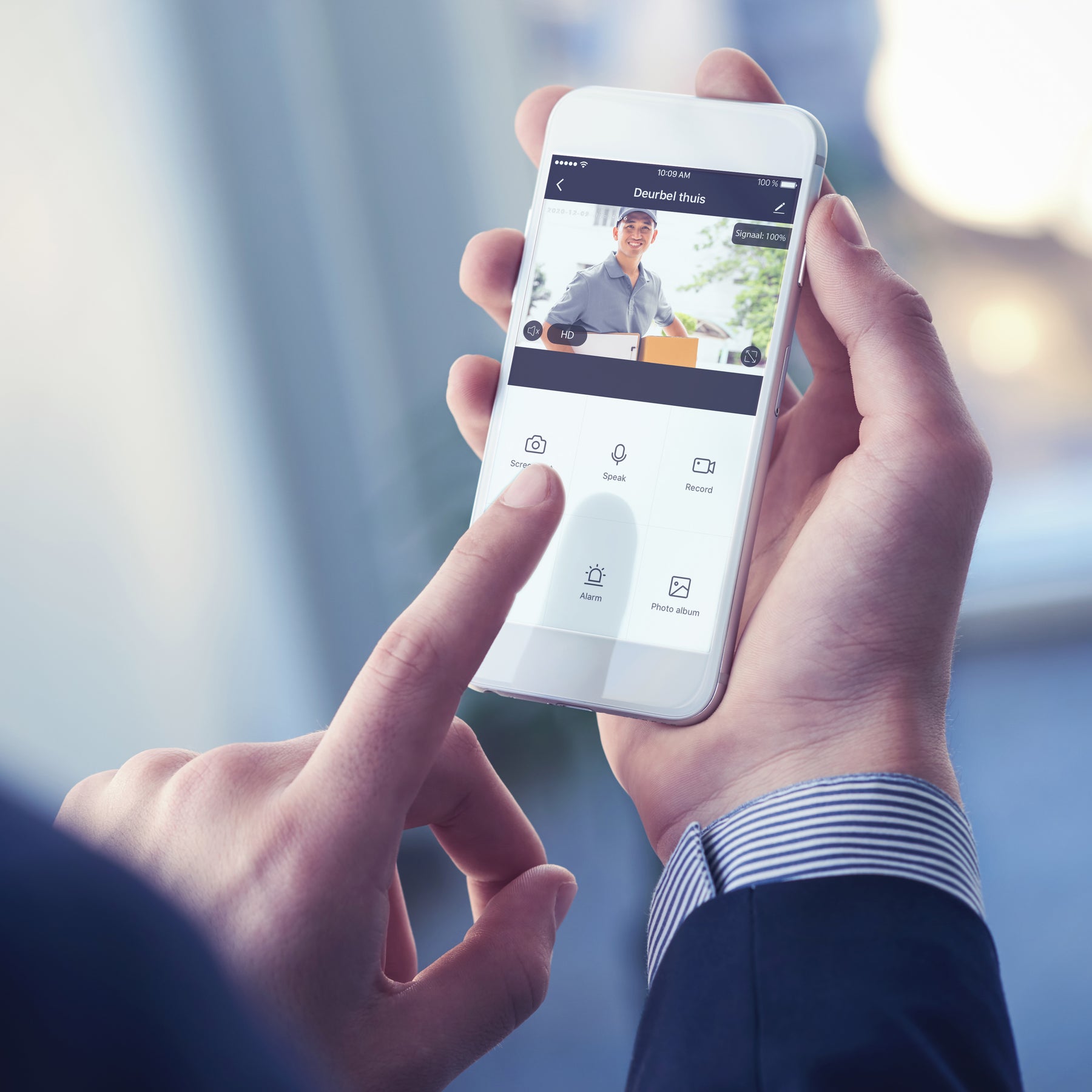 Voyez qui se trouve derrière la porte sans l'ouvrir avec l'Alecto SMART-RING20. Avec cette sonnette wifi connectée avec caméra, vous pouvez voir qui sonne à la porte, où que vous soyez. Vous recevrez immédiatement une notification sur votre smartphone et / ou sur votre tablette via l'application gratuite Smart Life. Même si vous n'êtes pas chez vous, vous pouvez parler à la personne qui se trouve devant chez vous via cette application.