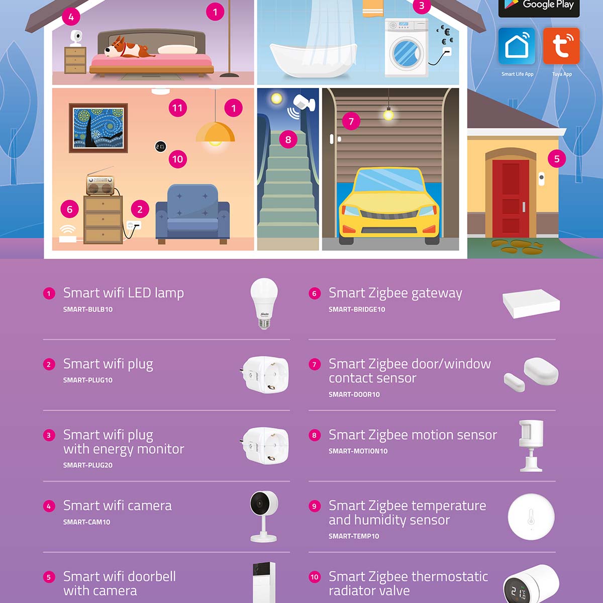 La sonnette sans fil fonctionne en WiFi et peut être connectée directement au réseau (domestique) sans aucun problème. Aucun pont ni passerelle n'est requis pour cela. La sonnette est connectée à l'application gratuite Smart Life de Tuya qui peut être téléchargée gratuitement pour tous les appareils iOS et Android. Tous les produits Alecto Smart Life peuvent être gérés via cette application.