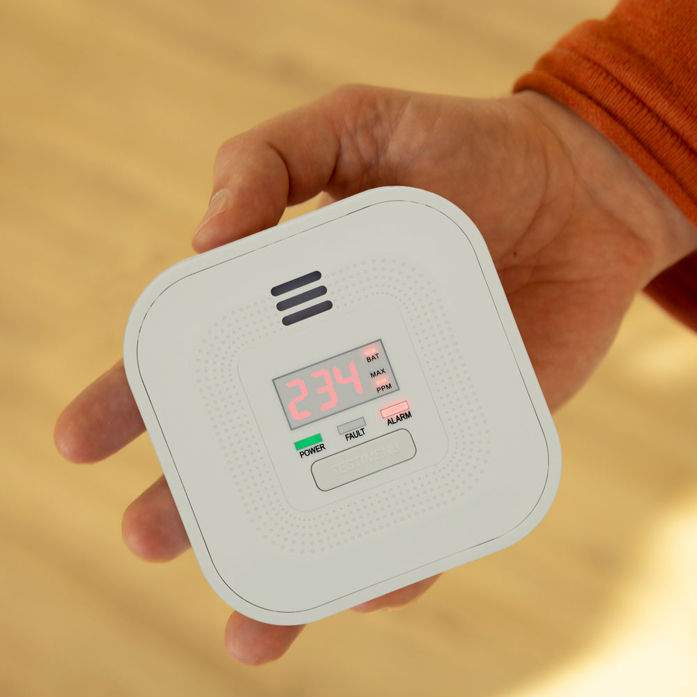 Les détecteurs de monoxyde de carbone affichent la concentration en ppm. Ppm signifie parties par million, c’est-à-dire le nombre de particules par million de particules. La loi impose que les détecteurs de CO déclenchent une alarme lorsqu’une concentration de 50 ppm est détectée pendant 60 minutes. Même lorsque vous dormez, une alarme de >85 dB ne passera pas inaperçue.