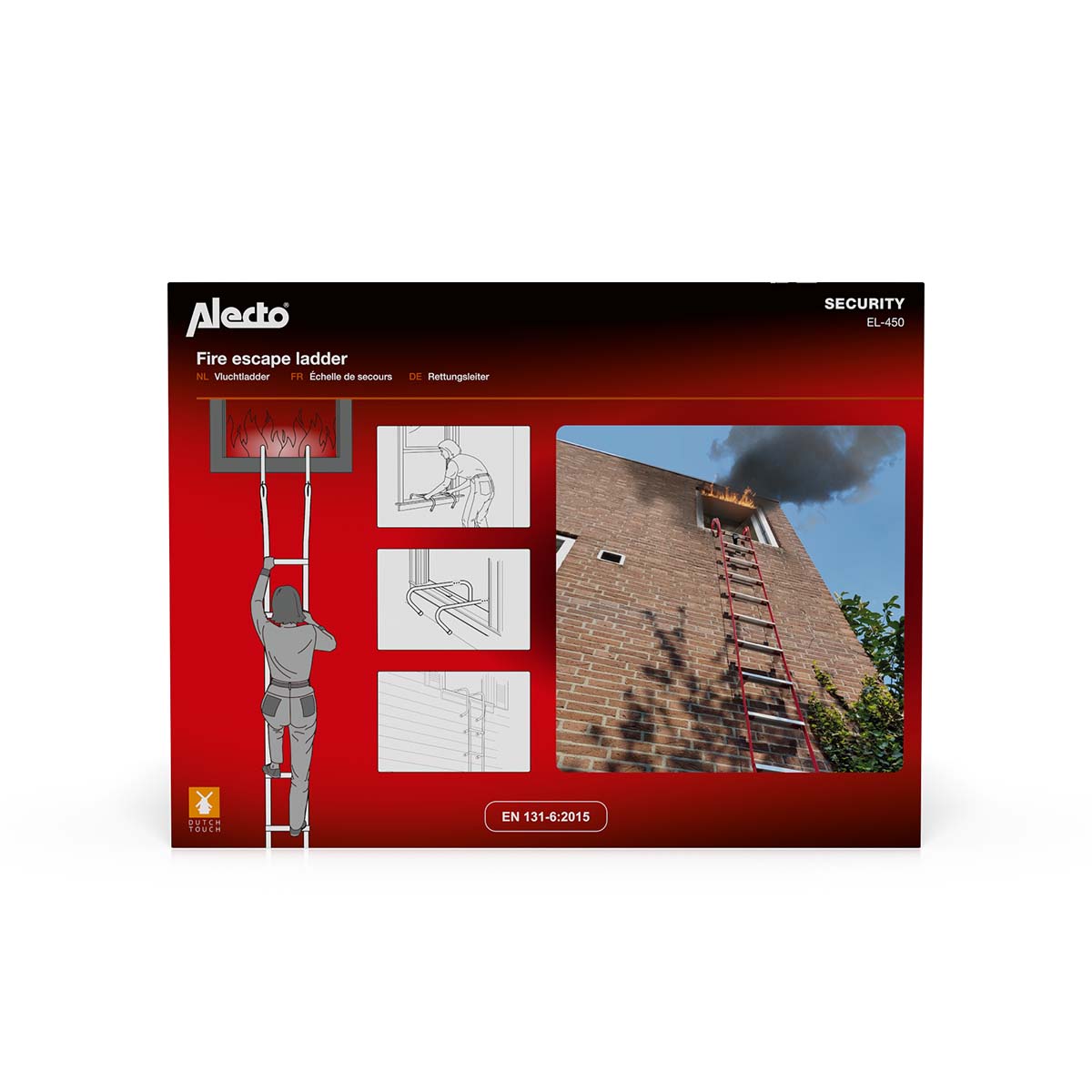 L’échelle de secours fait partie de notre gamme d’équipements de protection et pour la maison. Lors du développement et des tests des produits de cette catégorie, nous contrôlons toujours trois caractéristiques importantes. Les équipements de protection et pour la maison Alecto doivent selon nous toujours :
