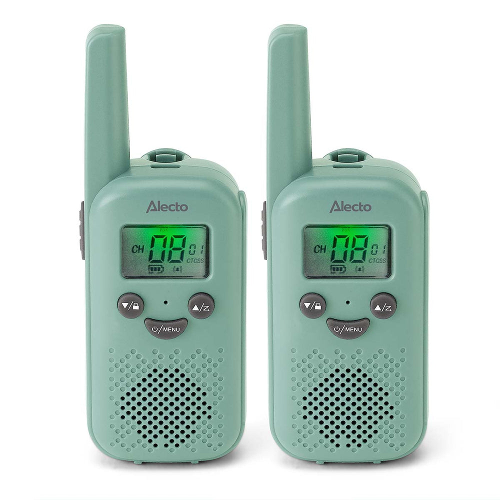 Alecto FR10GR - Set de deux talkies-walkies rechargeables pour enfants - Portée jusqu’à 6 kilomètres et longue autonomie en veille jusqu’à 24 heures - Vert menthe