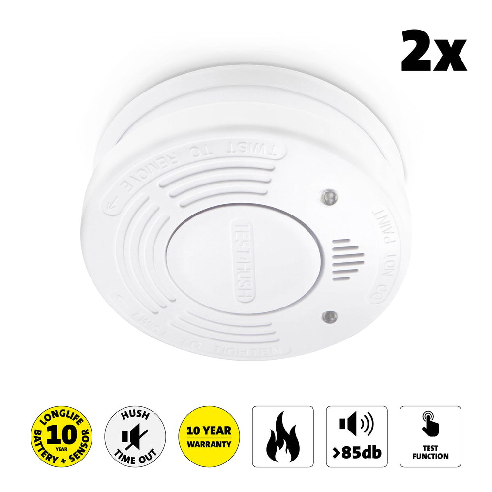 Alecto SD1010 2X - Rookmelder met batterij voor 10 jaar, 2 stuks