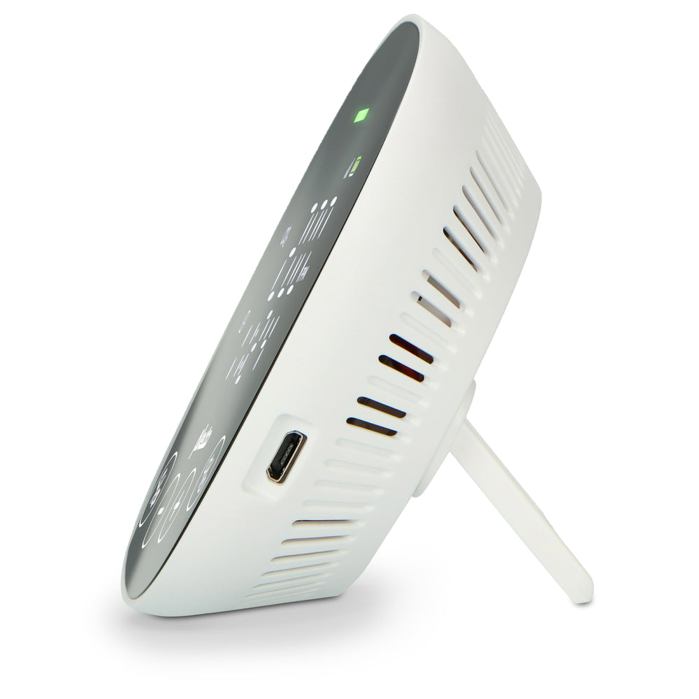 - Indication de la qualité de l’air à l’aide d’un code de couleurs (vert, orange et rouge)
