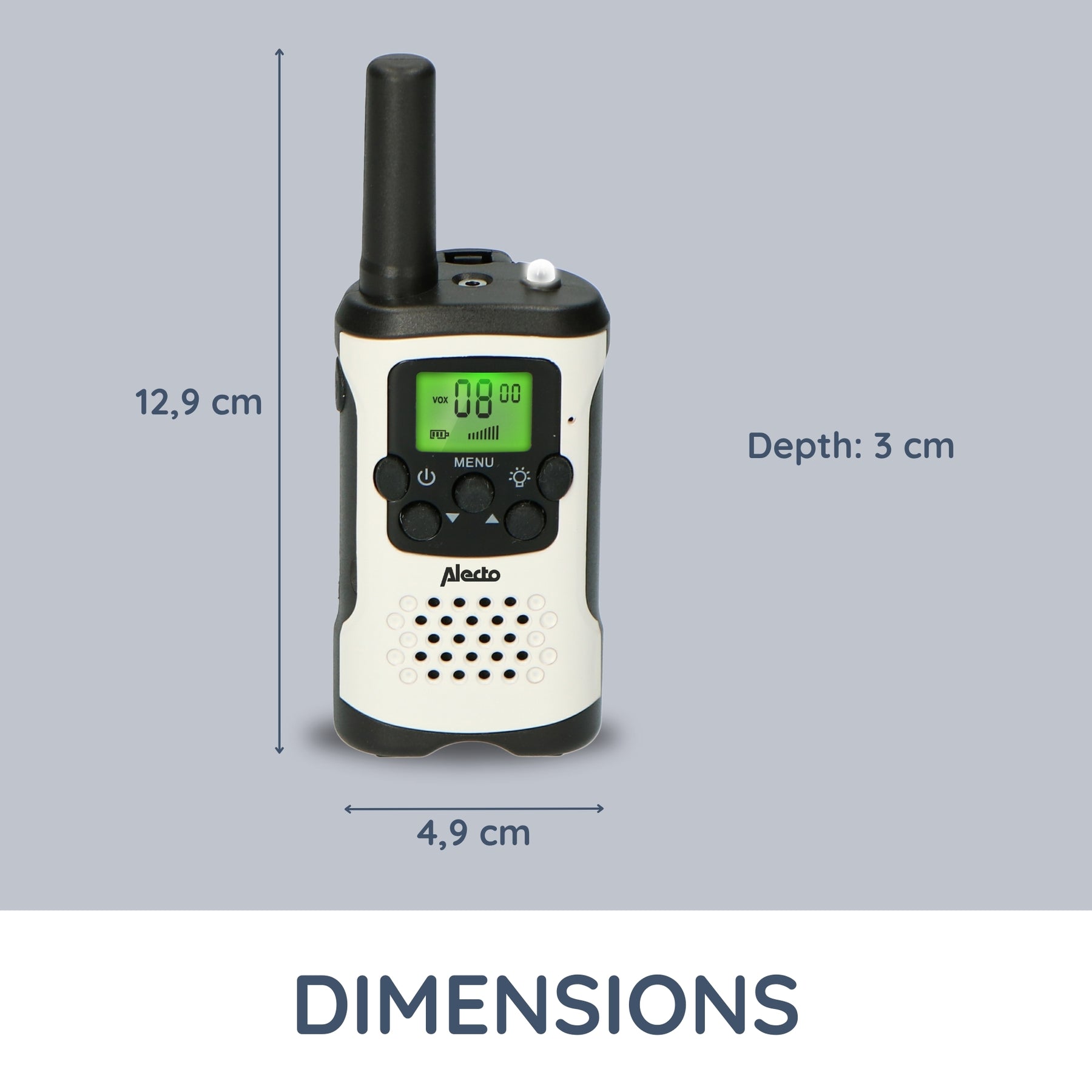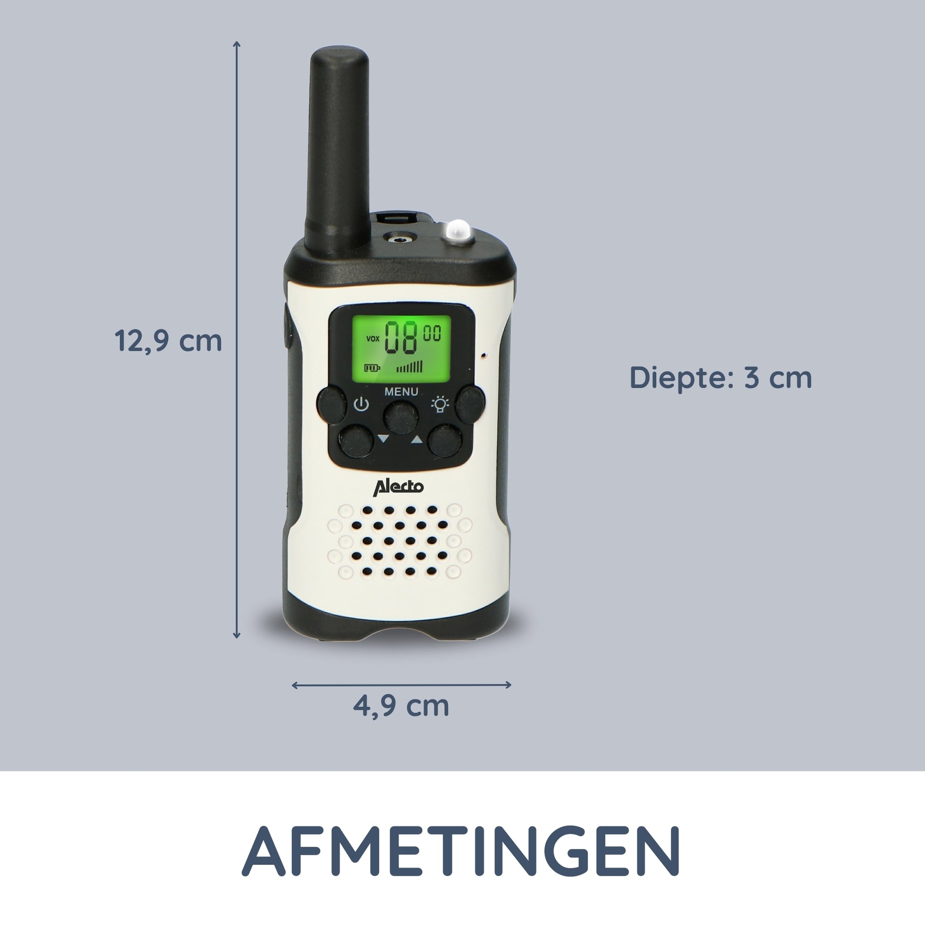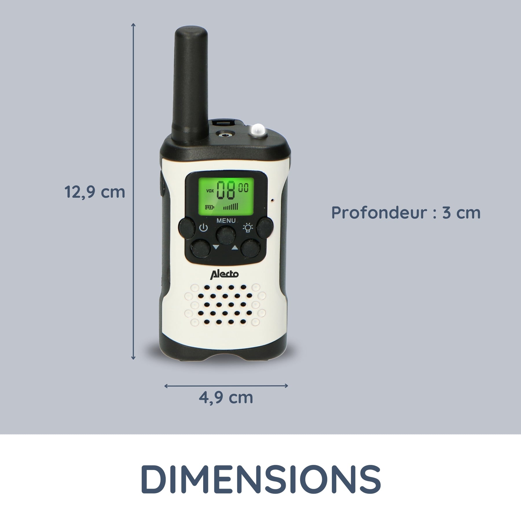 Ces talkies-walkies robustes sont conçus pour l’extérieur, pour vous permettre de rester en contact les uns avec les autres pendant toutes vos activités de plein air et ce, gratuitement. Ce set, de taille compacte, est livré avec les clips ceinture. Les talkies-walkies opèrent sur 8 canaux avec une recherche automatique des canaux disponibles. Pratique, cet ensemble peut s’utiliser en mode mains libres en le connectant à l’oreillette FRH-10 Alecto : un moyen sûr et légal pour la conduite.