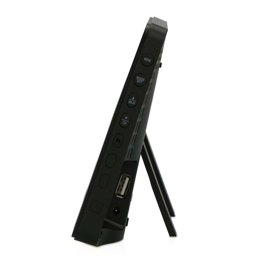 L’écran du radar météorologique BR900 affiche également la date, le jour et l’heure. Elle est parfaite pour la table de chevet mais peut également être suspendue.
