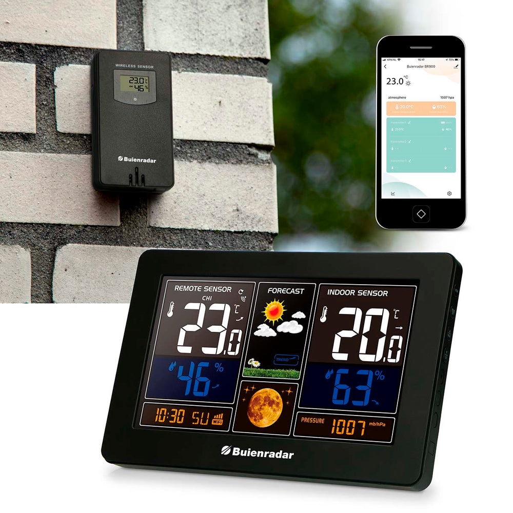 Buienradar BR900 - Station météo 3 en 1 avec Wi-fi, app et capteur extérieur sans fil , noir