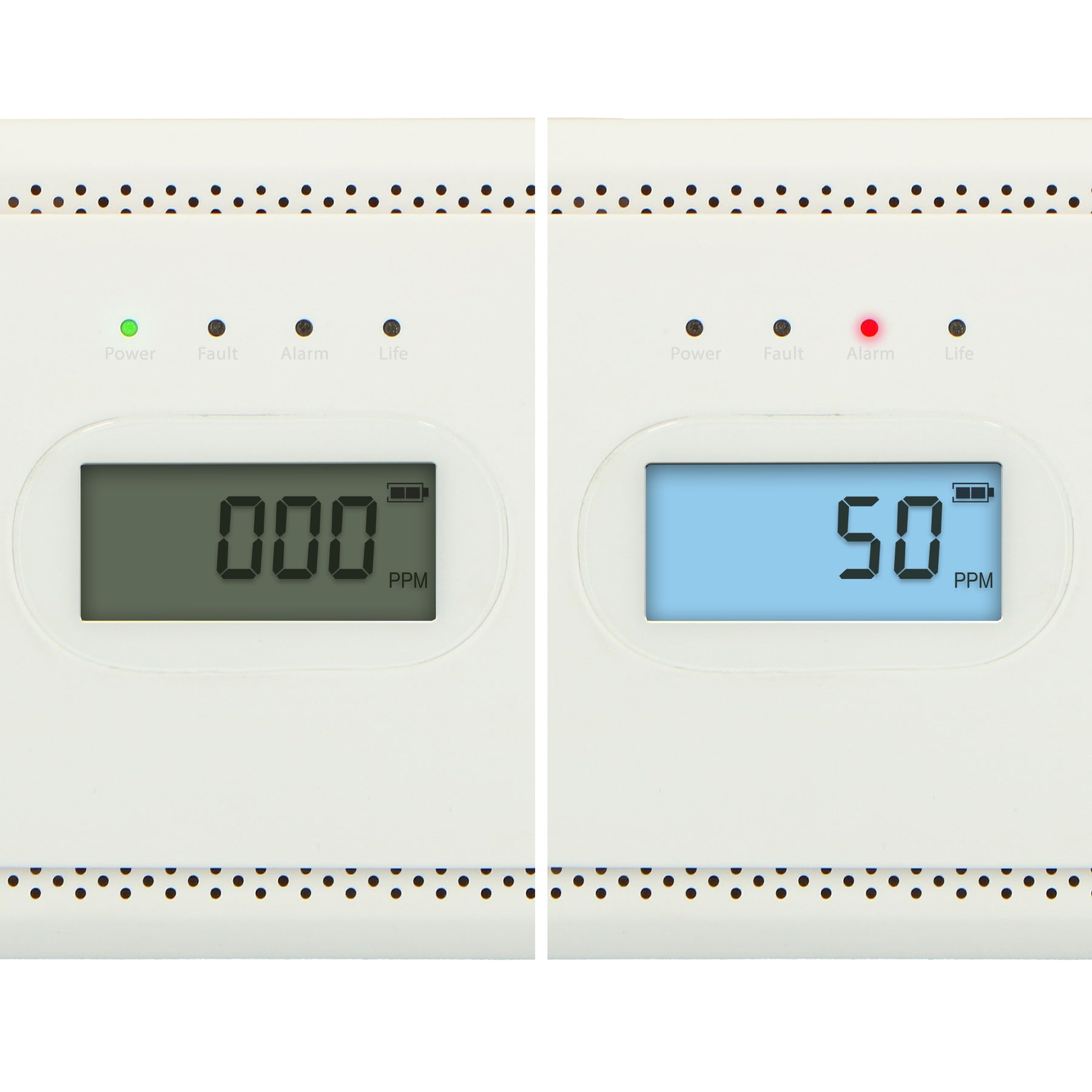 Les détecteurs de monoxyde de carbone indiquent la concentration en monoxyde de carbone en ppm. Il s’agit des parties par million, soit le nombre de particules pour un million de particules. Légalement, les détecteurs de monoxyde de carbone doivent émettre une alarme en cas de détection d’une concentration en monoxyde de carbone de 50 ppm ou plus pendant 60 minutes. L’alarme de plus de 85 dB ne passera pas inaperçue, même si vous dormez.
