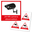 - quatre petits autocollants triangulaires avec le texte « Warning! 24 HR camera observation ».