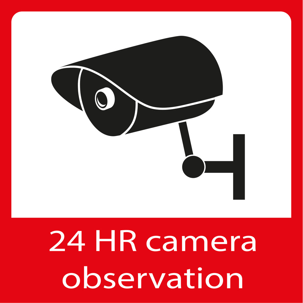 - un grand autocollant carré avec le texte « 24 HR camera observation »,