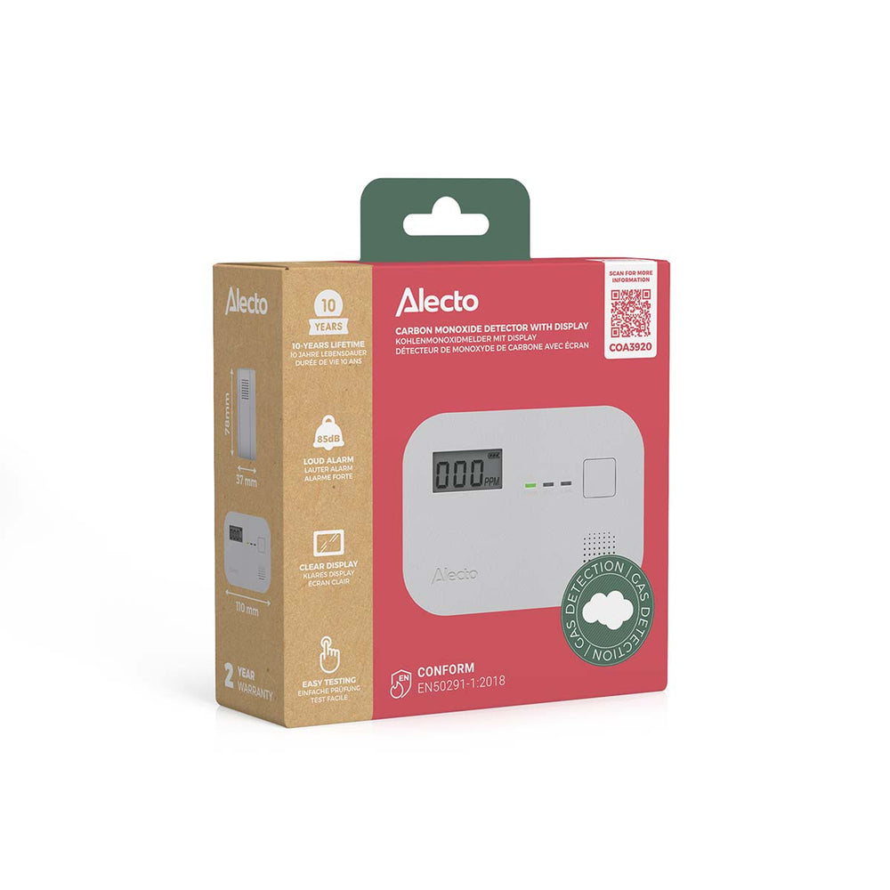 Alecto COA3920 - Détecteur de monoxyde de carbone avec capteur 10 ans et affichage
