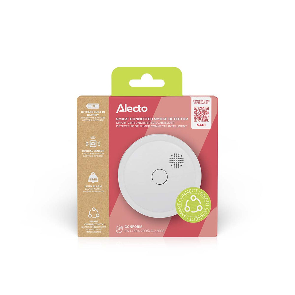 Le détecteur de fumée Alecto SA61 peut être connecté sans fil à d’autres détecteurs de fumée, ce qui renforce la sécurité incendie. Votre environnement est protégé de manière optimale. En effet, lorsqu’un dispositif détecte de la fumée ou un incendie, tous les détecteurs de fumée connectés émettent une alarme. Ce détecteur de fumée pouvant être connecté sans fil est équipé d’une batterie et d’un capteur optique ayant tous les deux une durée de vie de dix ans. Le détecteur de fumée SA61 vous garantit un environnement sûr pendant dix ans. Ce détecteur de fumée répond bien évidemment aux exigences et normes européennes les plus élevées.