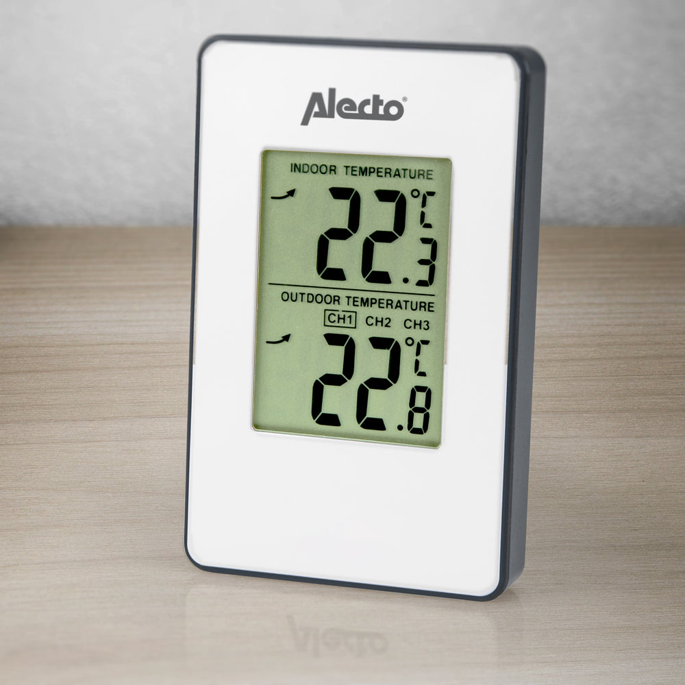 La WS-1050 est une station météorologique de base compacte d'Alecto, qui affiche la température à l'intérieur et à l'extérieur. La température extérieure est mesurée par le WS-1050 à l'aide d'un capteur sans fil. L'unité extérieure sans fil fonctionne avec deux piles AAA. Dès que vous avez installé l'unité extérieure, elle mesure en permanence la température extérieure et envoie les données à votre station météorologique intérieure. Le grand écran, facile à lire, vous indique la température extérieure en temps réel. Le WS-1050 mémorise la dernière température minimale et maximale. Il est facile de voir à quel point il faisait chaud ou froid la veille ou le soir.