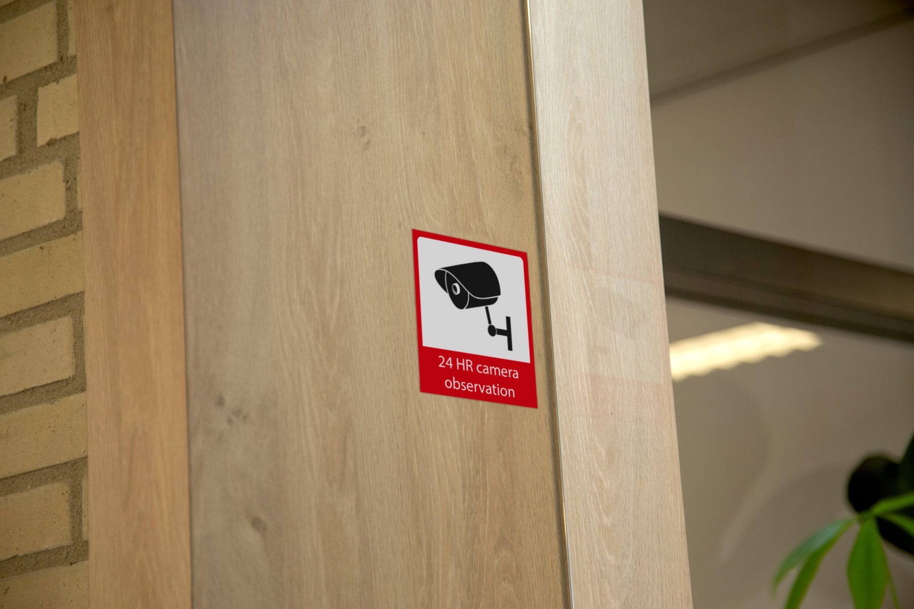 - un grand autocollant carré avec le texte « 24 HR camera observation »,